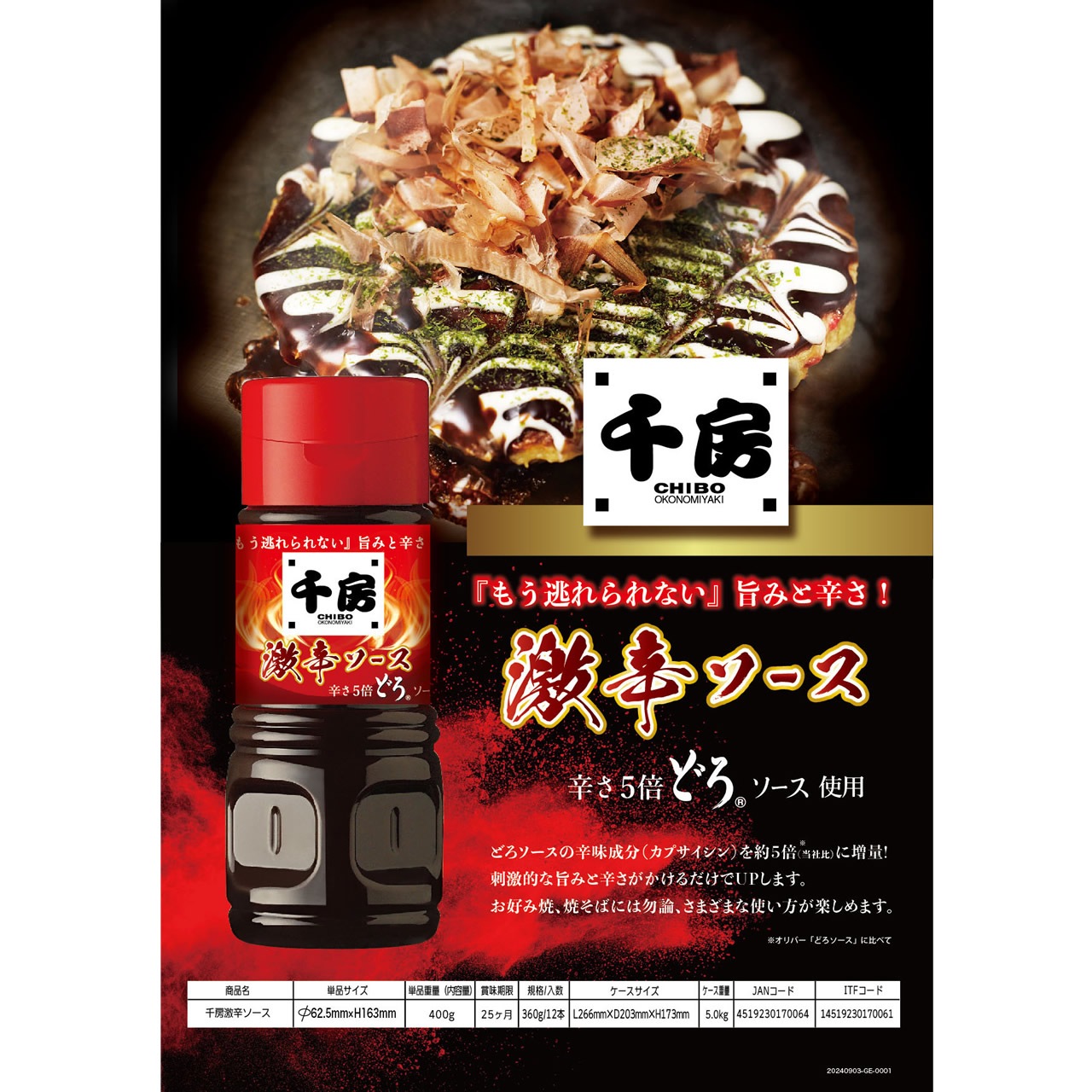 1973年大阪千日前にて創業のお好み焼専門店「千房」とオリバーソースのコラボ商品。ソース本来の持っている野菜の旨味と香辛料の辛味がバランスよく調和された激辛ソースです。刺激的な辛さとコクが料理の味を引き締めます。