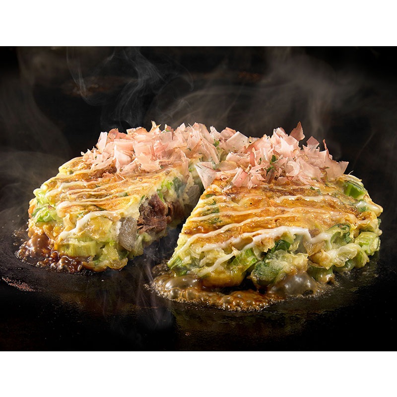 千房オリジナルのお好み焼ミックス粉を使いふっくらと焼き上げた豚肉・いか・えび・チーズ・牛すじこんにゃくの5種の具材が入ったボリューム感満点のお好み焼道頓堀焼に、宮崎県産黒毛和牛を贅沢にも具材に使った黒毛和牛お好み焼に、豚肉・いか・えび・牛すじこんにゃくの4種の具材が入った醤油たれでお召上がりいただくねぎ焼ミックスをセットにしました。